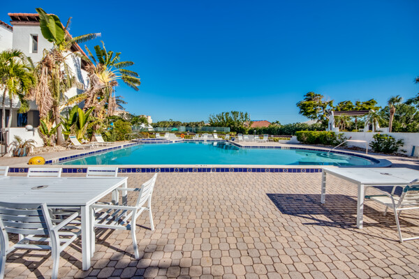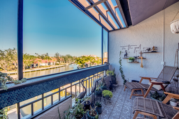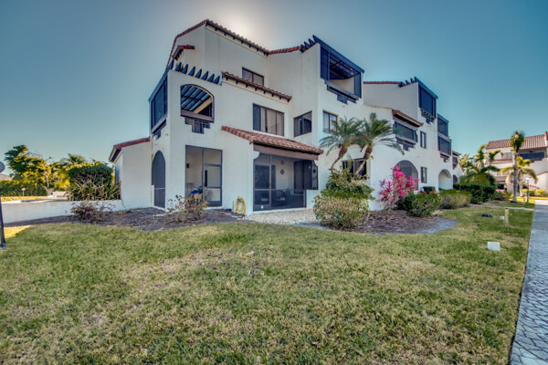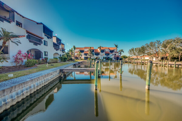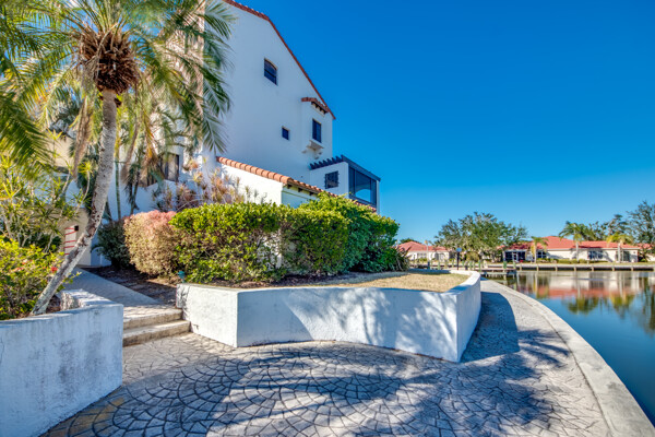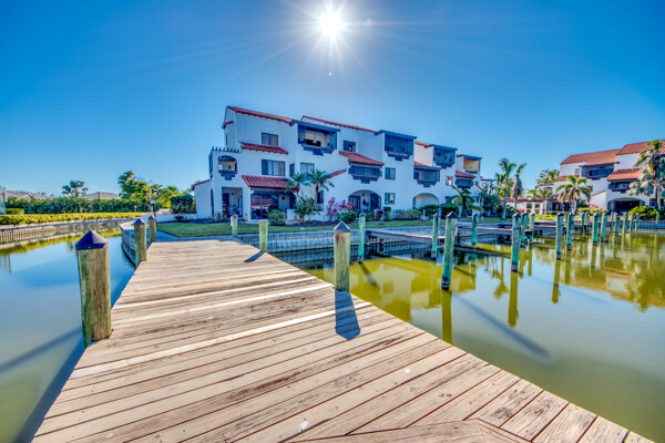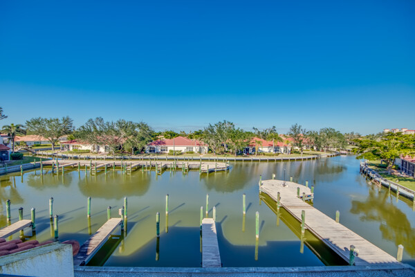 Two story penthouse with water view & access to Gulf. Private dock, 3.5 deep. Recently upgraded with new AC, first floor luxury vinyl, upgraded lighting, remodeled main level bath, millwork w/ fresh paint, granite surfaces with wet bar, new convection/air fryer/wifi stove, high tech microwave and stainless steel appliances. Don't forget the sunshades and screened lanai with westward facing sunsets and waterfrontage. Access the huge pool, jacuzzi, tennis courts, workout building, and marina from your own dockside unit. Only dwelling with two storage units on main level! One assigned carport and ELEVATOR to the third floor. NO HURRICANE DAMAGE. Development soon to install impact doors/windows & new roof. Upstairs bathroom currently in stage one of remodel, but fully functional.