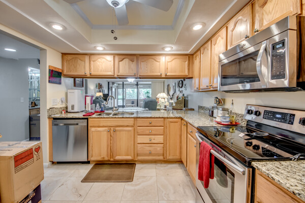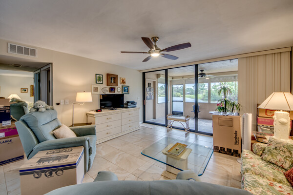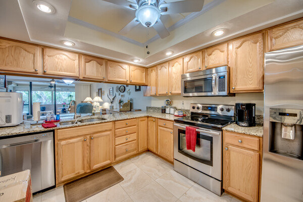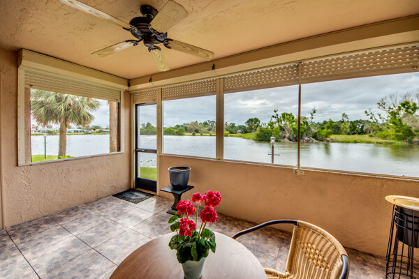 Highly sought after move in ready first floor condo in Lakeside at Lochmoor. Move right in and start relaxing and enjoying the beautiful lake view! The updates have been done for you. Features include granite and SS appliances in kitchen. Matching granite and cabinets in both bathrooms. Walk in shower in the master and tub in the guest bath. Condo is spacious with lots of closets, also a storage area on the 2nd floor. Big lanai for relaxing with peaceful views. This property also includes roll down shutters and a deeded carport for your convenience. Short walk to the pool. Call to see today!