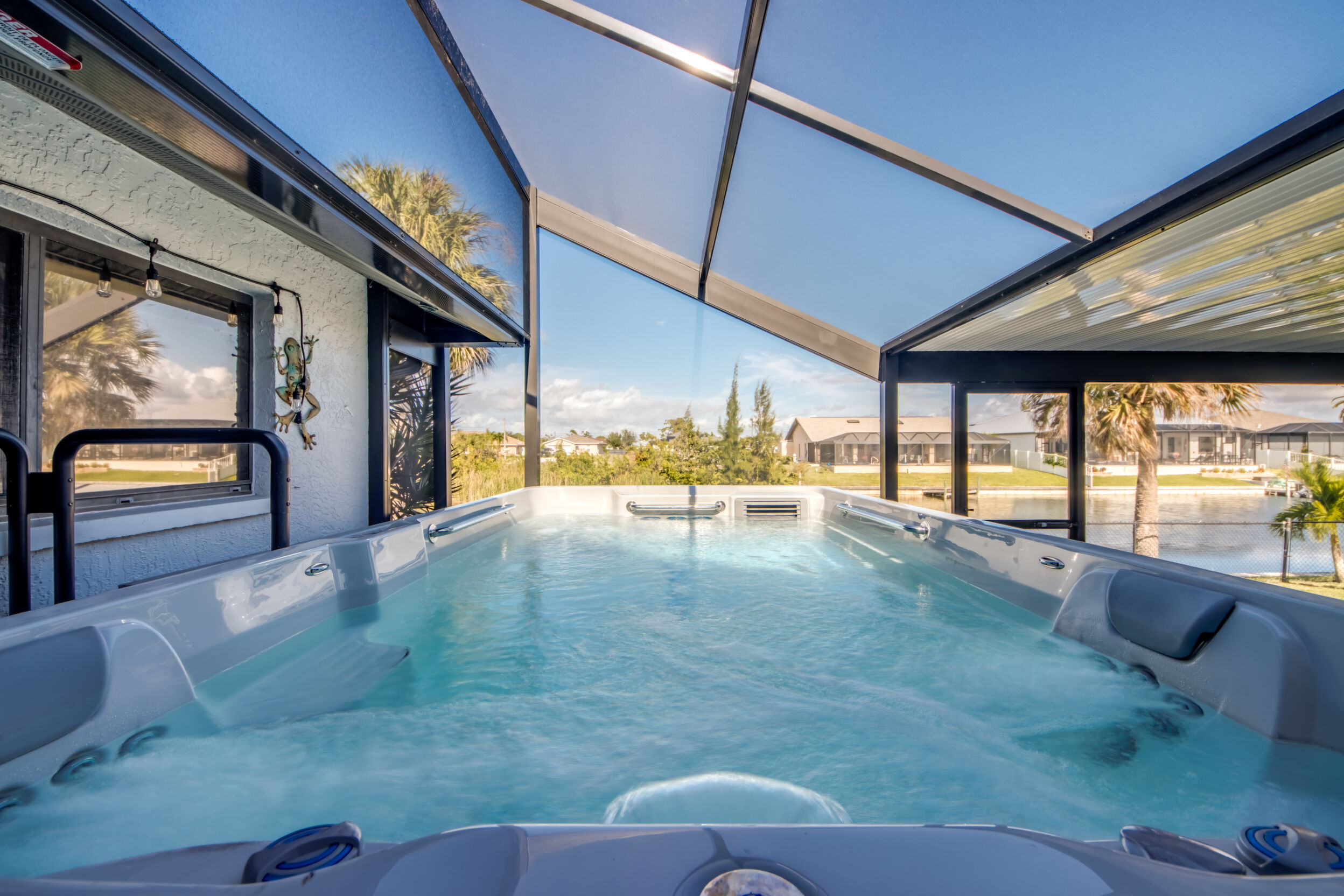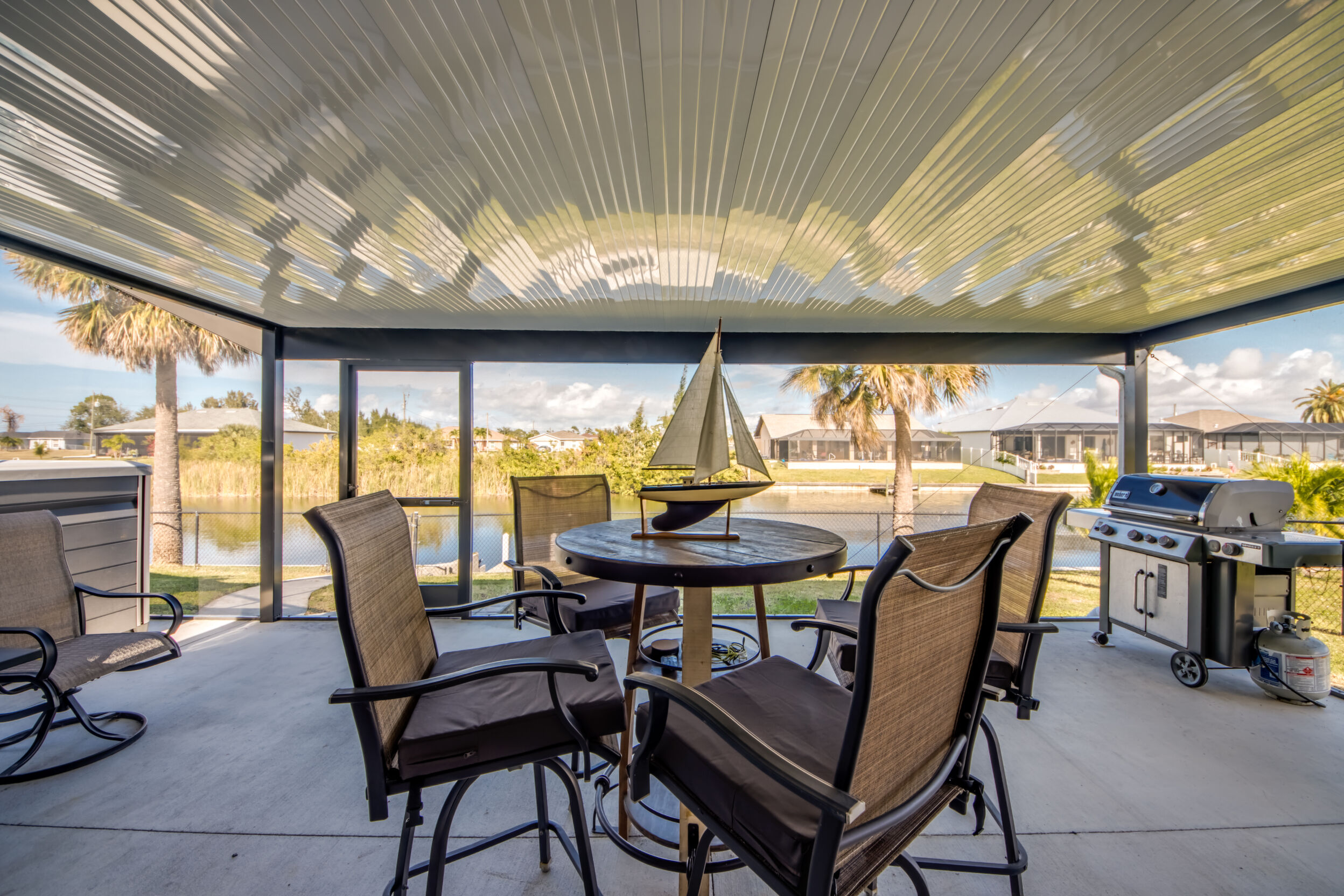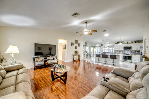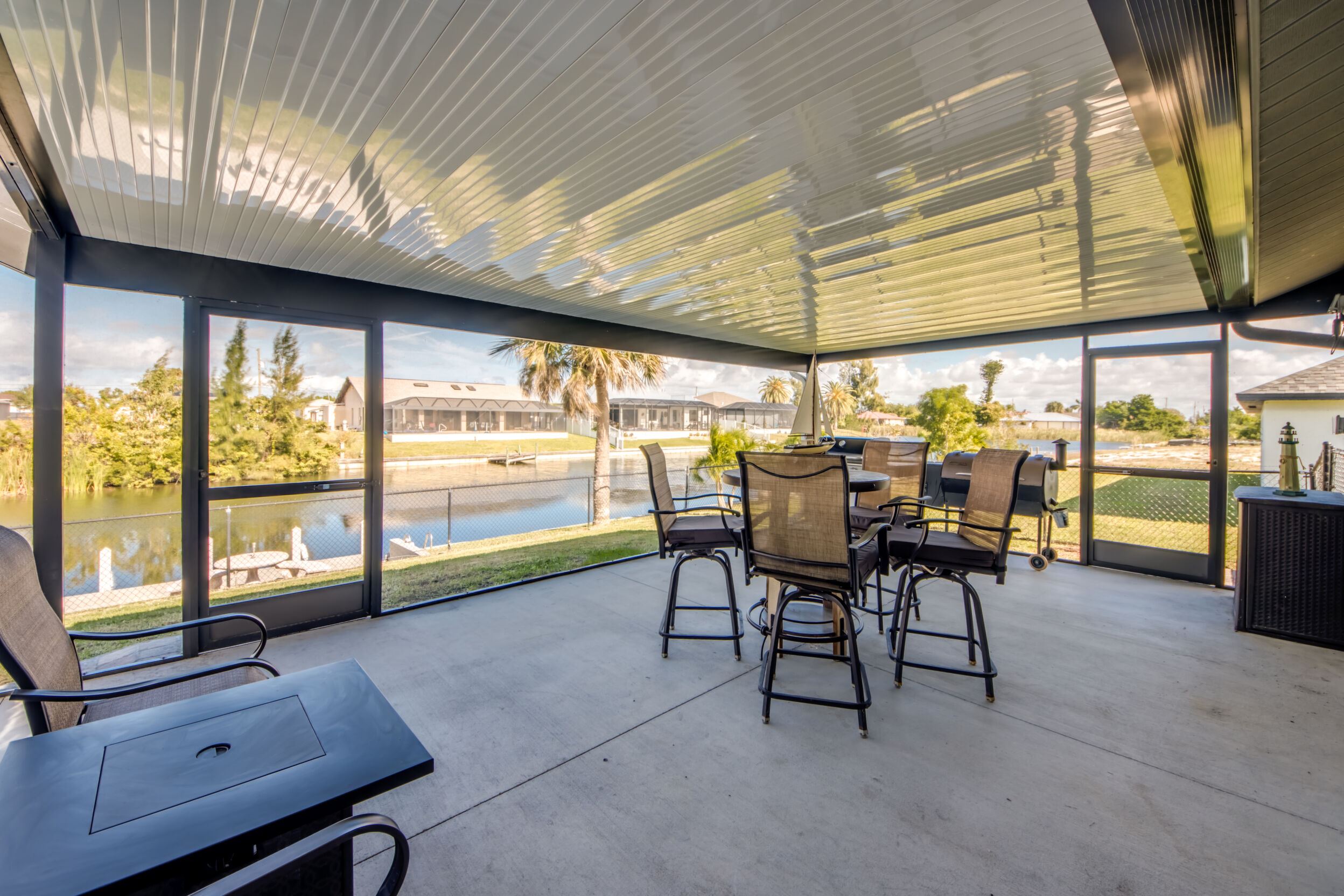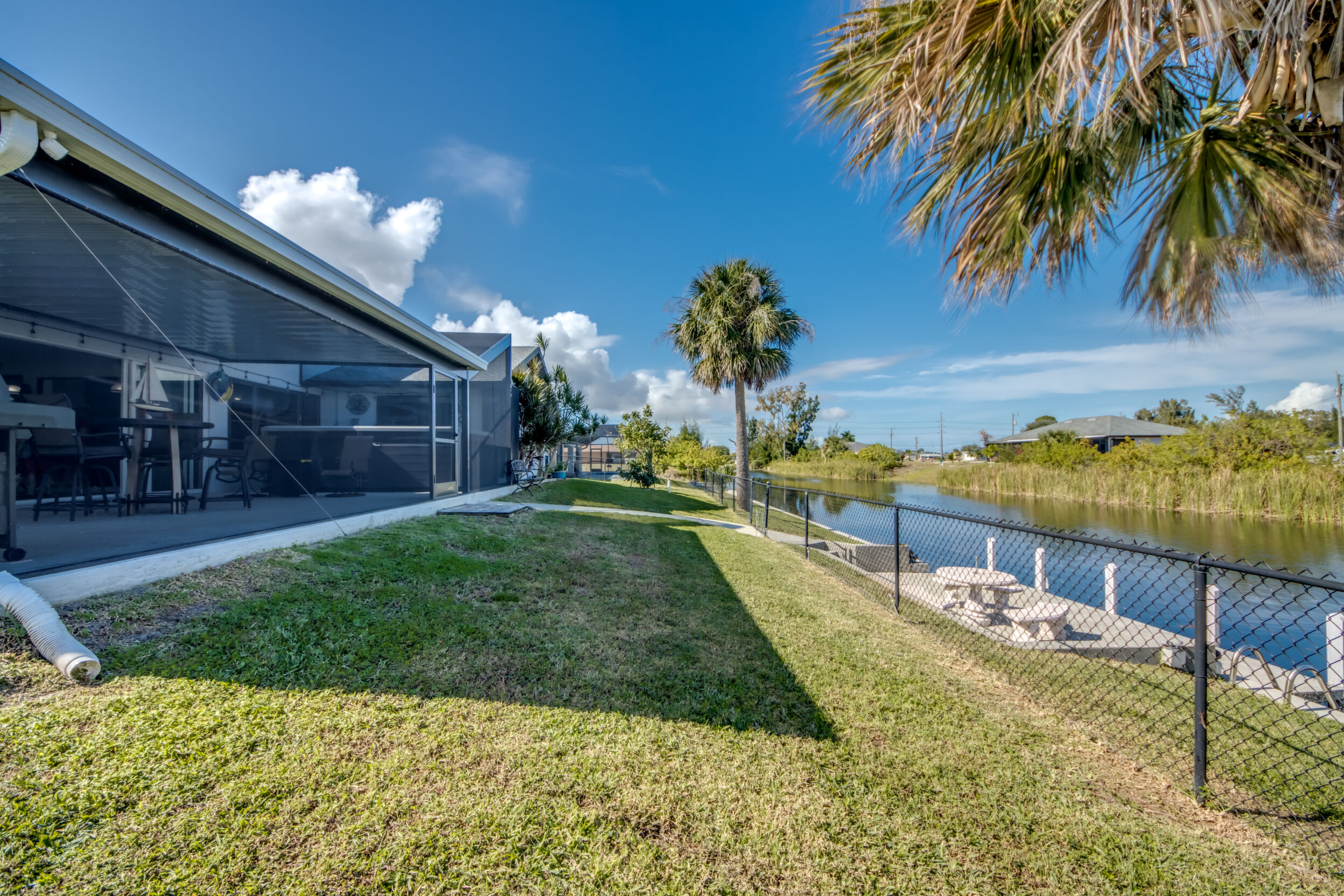 Designed for Entertaining, Built for Relaxation, Perfect for Florida Living Welcome to a home that truly checks every box for entertaining, vacation living, and effortless relocation to Southwest Florida. Located on the Shadroe Canal with access to Valmora Lake, this 3-bedroom, 2-bath residence offers 2,466 sq ft under air, no HOA restrictions, and a lifestyle that feels like a private waterfront retreat. From the moment you step inside, you'll appreciate the open-concept floor plan designed to bring people together. The spacious kitchen flows seamlessly into the main living area, featuring vaulted ceilings, an eat-in kitchen, a large island with seating for three, and a separate formal dining room-ideal for hosting holidays, dinner parties, or casual gatherings with friends and family. Indoor-Outdoor Living at Its Best One of the standout features of this home is its exceptional outdoor living design: Pocket sliders open to a first outdoor living space under truss, fully air-conditioned for year-round comfort. Impact sliders lead to a second outdoor living area, upgraded with a 16' x 32' pan roof, Super Screen enclosure, and oversized picture windows for unobstructed water views. A 16,000.00 swim spa overlooks the freshwater canal, creating the perfect space to relax, entertain, or unwind after a day on the water. The fully fenced backyard offers peace of mind for families and pet owners alike-creating a safe, private haven while still enjoying waterfront living. Waterfront Lifestyle Without the Flood Insurance. Situated in Flood Zone X (no flood insurance required for most mortgages), this home features a concrete cantilever dock on the Shadroe Canal, perfect for kayaking, paddleboarding, fishing, and enjoying abundant wildlife. Morning sunrises and evening sunsets shimmer across the canal, delivering a daily reminder of why Florida living is so special. Move-In Ready with Major Upgrades. New roof, Updated kitchen, New screen enclosure & pan roof, New swim spa, City water & sewer in (partially paid)Extra storage shed, Optional partially furnished purchase. Central, Convenient, & Connected! Whether you're relocating or seeking a vacation home, the location is hard to beat:5 minutes to Publix, dining, fuel, and everyday essentials , 5 minutes to Burnt Store Boat Ramp, 5 minutes to Joe Stonis Park, 10 minutes to the 7 Islands Project, 27 minutes to Punta Gorda Airport, 40 minutes to RSW International Airport, Walmart coming soon nearby. This is more than a home-it's a lifestyle. Perfect for entertaining, ideal as a vacation retreat, and thoughtfully designed for those relocating to Florida who want space, comfort, and waterfront living without compromise.