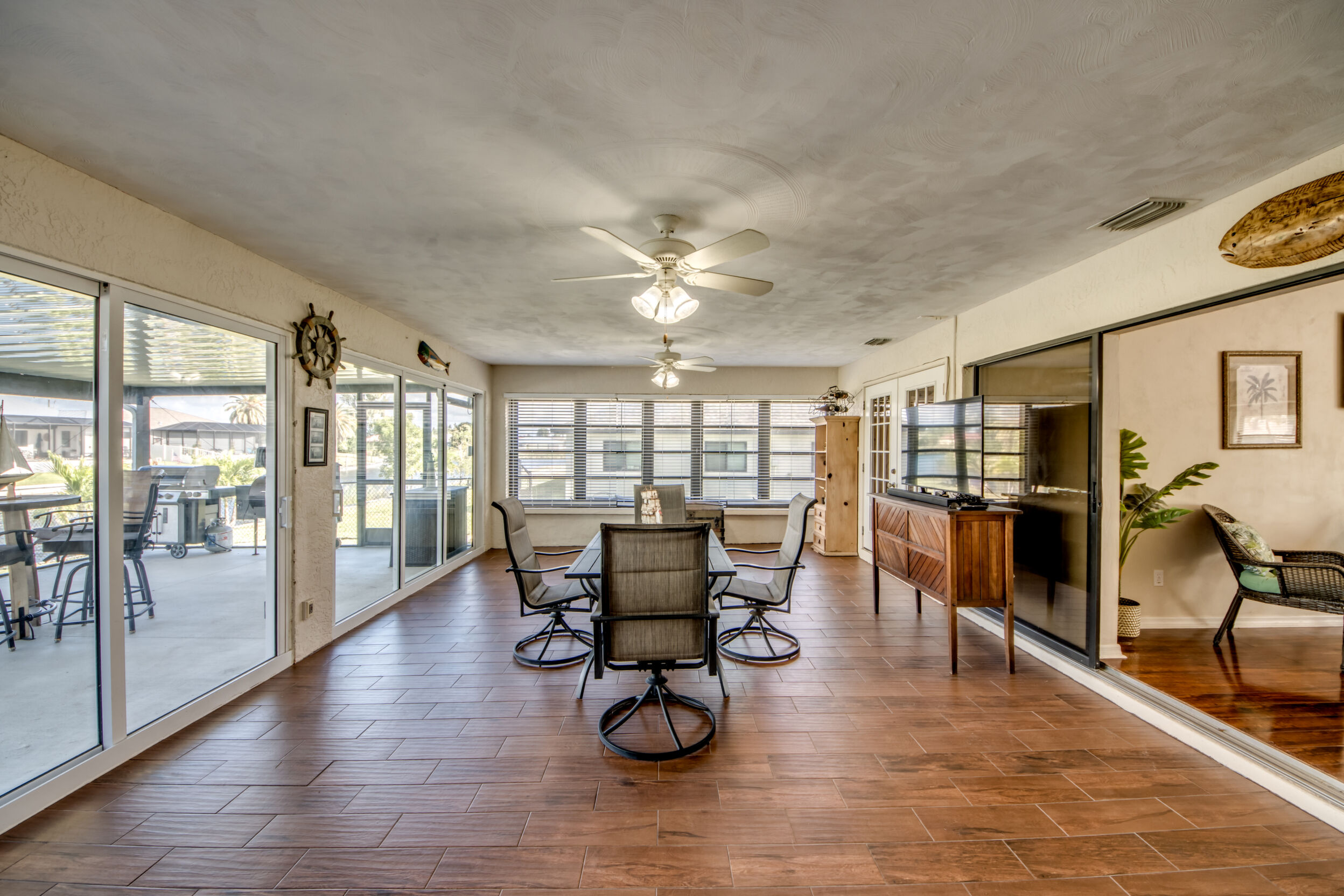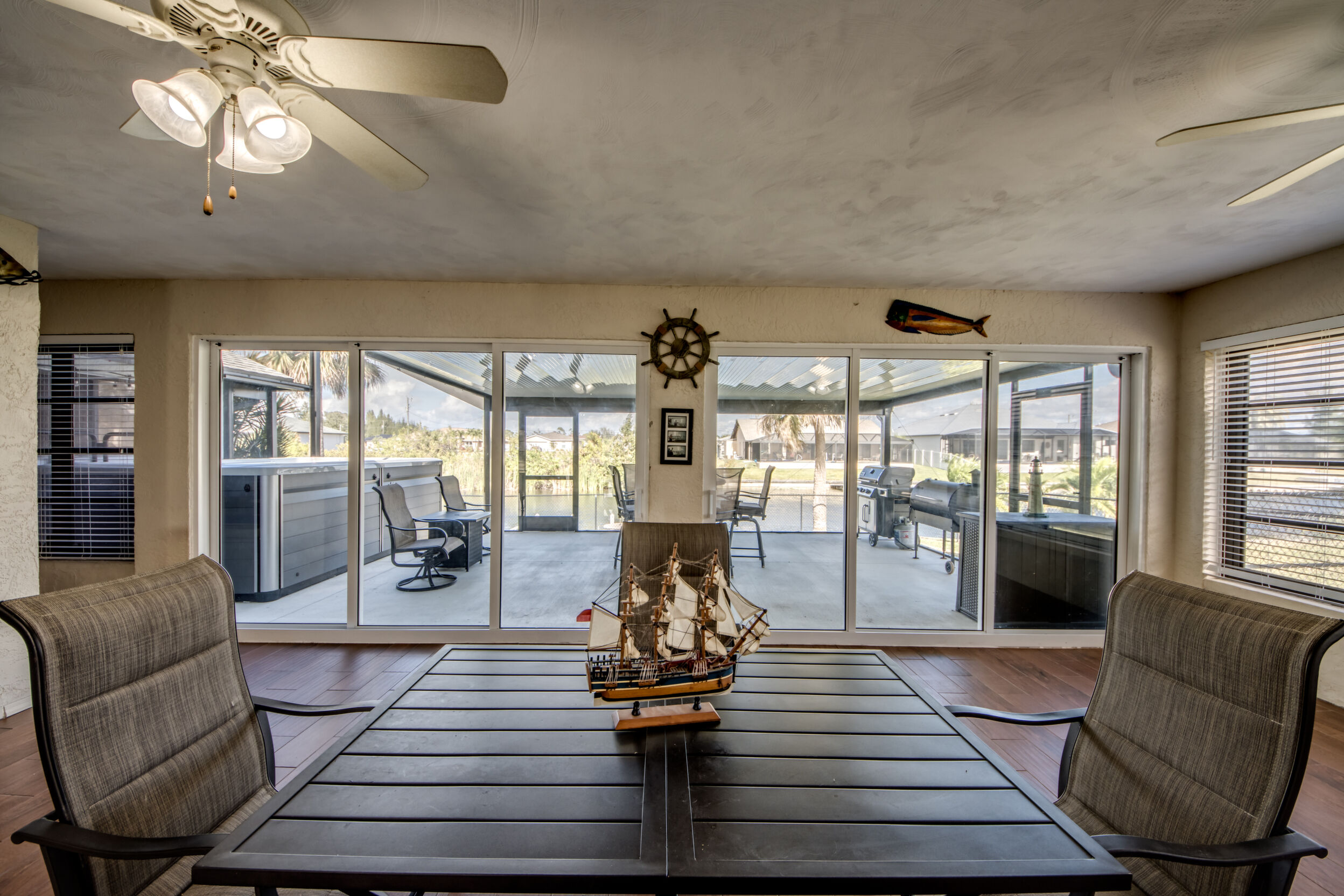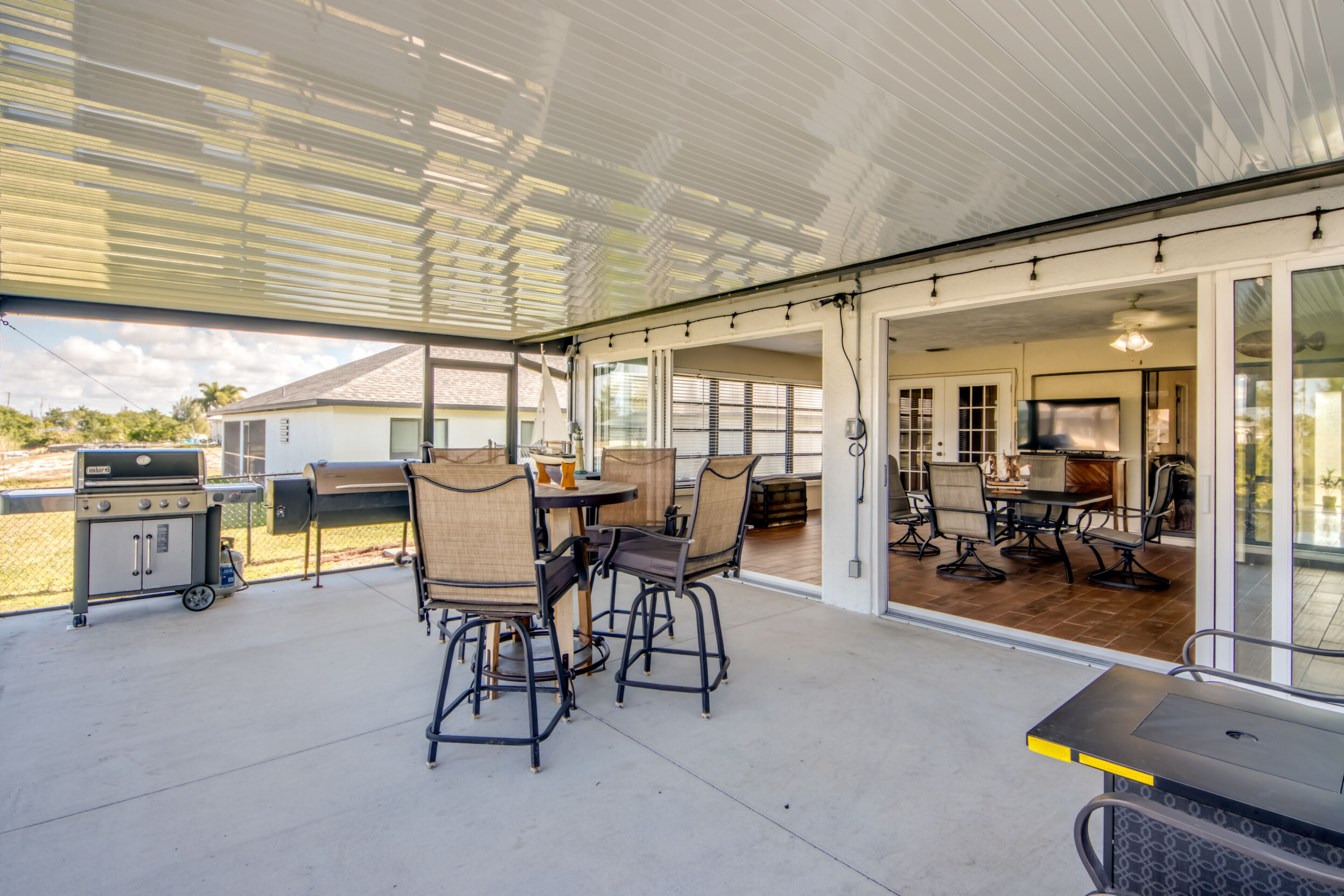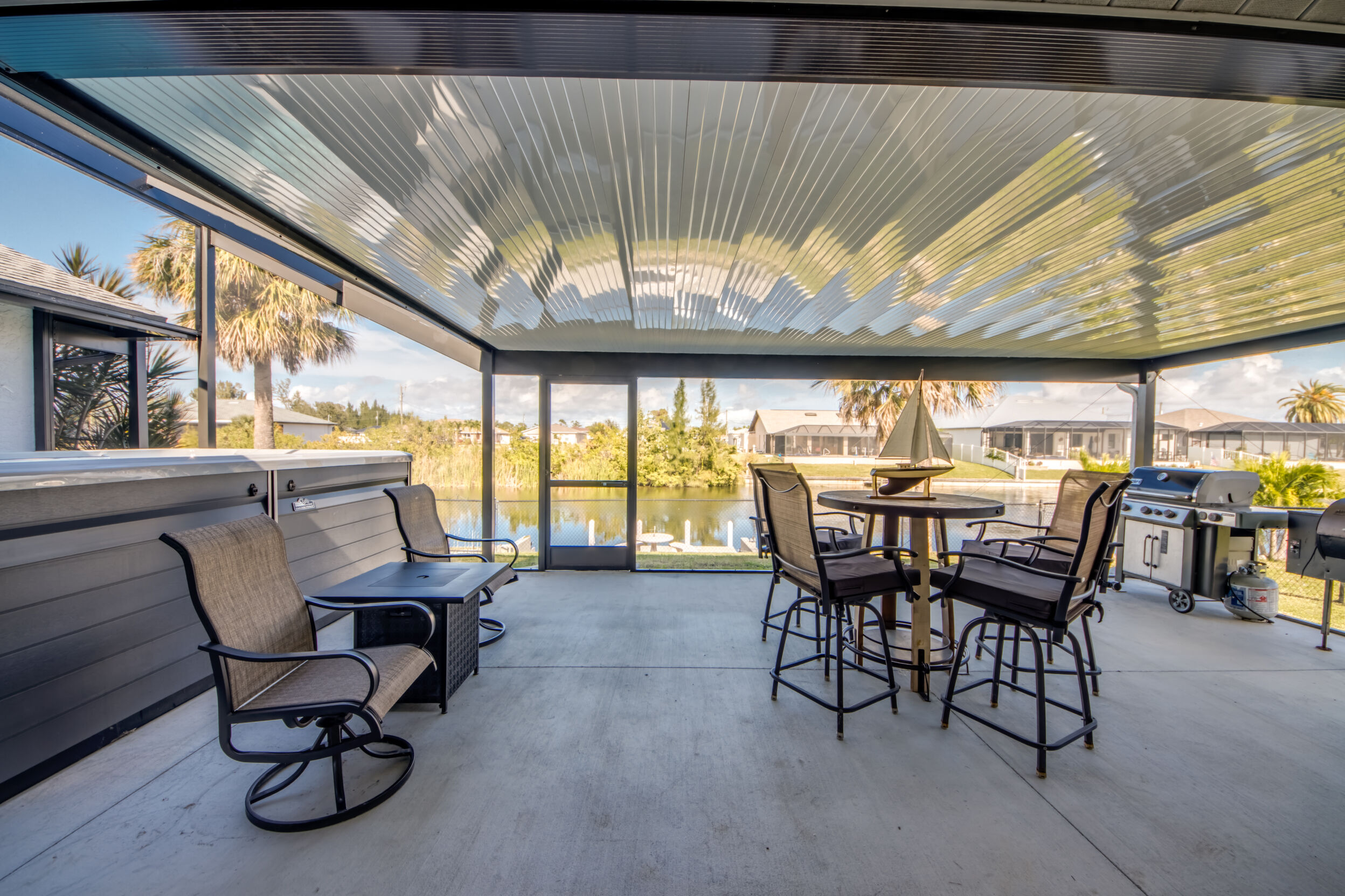 Designed for Entertaining, Built for Relaxation, Perfect for Florida Living Welcome to a home that truly checks every box for entertaining, vacation living, and effortless relocation to Southwest Florida. Located on the Shadroe Canal with access to Valmora Lake, this 3-bedroom, 2-bath residence offers 2,466 sq ft under air, no HOA restrictions, and a lifestyle that feels like a private waterfront retreat. From the moment you step inside, you'll appreciate the open-concept floor plan designed to bring people together. The spacious kitchen flows seamlessly into the main living area, featuring vaulted ceilings, an eat-in kitchen, a large island with seating for three, and a separate formal dining room-ideal for hosting holidays, dinner parties, or casual gatherings with friends and family. Indoor-Outdoor Living at Its Best One of the standout features of this home is its exceptional outdoor living design: Pocket sliders open to a first outdoor living space under truss, fully air-conditioned for year-round comfort. Impact sliders lead to a second outdoor living area, upgraded with a 16' x 32' pan roof, Super Screen enclosure, and oversized picture windows for unobstructed water views. A 16,000.00 swim spa overlooks the freshwater canal, creating the perfect space to relax, entertain, or unwind after a day on the water. The fully fenced backyard offers peace of mind for families and pet owners alike-creating a safe, private haven while still enjoying waterfront living. Waterfront Lifestyle Without the Flood Insurance. Situated in Flood Zone X (no flood insurance required for most mortgages), this home features a concrete cantilever dock on the Shadroe Canal, perfect for kayaking, paddleboarding, fishing, and enjoying abundant wildlife. Morning sunrises and evening sunsets shimmer across the canal, delivering a daily reminder of why Florida living is so special. Move-In Ready with Major Upgrades. New roof, Updated kitchen, New screen enclosure & pan roof, New swim spa, City water & sewer in (partially paid)Extra storage shed, Optional partially furnished purchase. Central, Convenient, & Connected! Whether you're relocating or seeking a vacation home, the location is hard to beat:5 minutes to Publix, dining, fuel, and everyday essentials , 5 minutes to Burnt Store Boat Ramp, 5 minutes to Joe Stonis Park, 10 minutes to the 7 Islands Project, 27 minutes to Punta Gorda Airport, 40 minutes to RSW International Airport, Walmart coming soon nearby. This is more than a home-it's a lifestyle. Perfect for entertaining, ideal as a vacation retreat, and thoughtfully designed for those relocating to Florida who want space, comfort, and waterfront living without compromise.