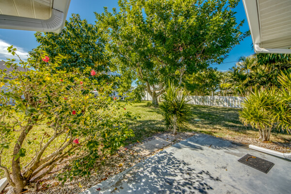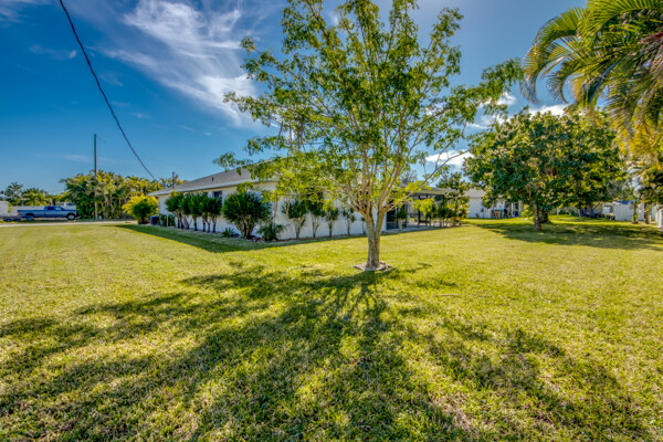 A new chapter awaits in southwest Cape Coral! Lovingly cared for and enjoyed over many years by one family, this charming home is now ready for its next chapter. Whether youre a first-time homebuyer looking for a place to raise your family, or newly retired and in search of a peaceful retreat to enjoy retirement, this residence in the highly sought after PELICAN neighborhood is a rare find. Not only is it a spacious home with almost 2, 200 square feet, but its also on one of the largest lots (125x125). Nestled on an oversized three-lot site, it offers the space and potential to create the home of your dreamsall within walking distance of Pelican Elementary School and surrounded by beautifully maintained homes. Inside, this well-kept home blends classic charm with untapped potential, serving as the perfect blank canvas to bring your vision to life. Vaulted ceilings enhance the open and airy feel, while pocketing sliders seamlessly connect indoor and outdoor living spaces. The home features both formal and informal living areas, offering versatility for entertaining, family gatherings, or quiet relaxation. The kitchen is the heart of this home and while still original it is in excellent condition, ready for an affordable reface or stylish update to match your personal taste. A unique highlight of this home is the spacious (32x13), air-conditioned Florida roomideal as a playroom, home office, art studio or fitness area. A dedicated inside laundry room adds extra convenience, making day-to-day living effortless. Enjoy the privacy of a split bedroom floorplan along with the convenience of a pool bath. Speaking of swimming pools, there is plenty of room to add your own swimming pool with this amazing lot! Plus a large screened lanai. Step outside and experience the Florida lifestyle at its best! The expansive, shaded backyard is perfect for outdoor fun, whether youre setting up a playset, gardening, or simply relaxing under the mature avocado and mango trees. The privacy fence and extended patio make it an ideal space for barbecuing, entertaining or unwinding after a long day. I see a lovely pool, fire pit and outdoor kitchen in your future, this backyard is ready to become your private oasis! Added benefits: Dimensional Shingle Roof new in 2022, 4 ton HVAC 2019, replumbed, partially fenced, city water and sewer with all assessments paid. And best of all NOT in a flood zone and no prior property flooding. No flood insurance required and no HOA fees. This is a pet friendly, family friendly, rent friendly neighborhood. Southwest Florida is a playground for shelling, swimming, pickleball, golf, and boating. With 400 miles of canals and nearby public boat ramps, youll enjoy world-class boating, freshwater and saltwater fishing, beaches and endless exploration of marine life. The extensive city park system offers year-round classes and activities for every age. Dont miss outschedule your private tour today and start imagining the possibilities!