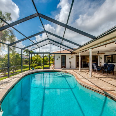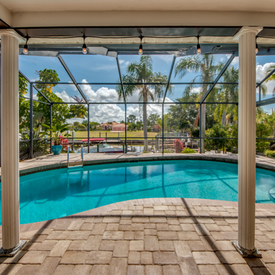 Come see this LOVELY renovated & remodeled Waterfront Gulf Accessible Pool Home in the highly desired Gulf Coast Estates in SE Cape... Kitchen updated with fabulous countertops & custom cabinets, Island with hooded range, stainless appliances, subway tiled backsplash, exquisite lighting, and luxury engineered flooring. Larger pass-thru window was created & Double Glass Entry installed to allow more natural light to shine on this beautiful gem, making old new again. The lanai is spacious and overlooks this crystal blue pool & expansive dock with lift. Drop your boat and in minutes you're on the Caloosahatchee with access to over 50 waterfront restaurants, world-renowned beaches, and some of the finest fishing estuaries our SW Gulf Coast has to offer. New Roof 2017, New AC 2019. This property is offered on an open transparent bidding platform. Open Bidding begins Saturday, June 12th, and closes Monday, June 14th at 5 pm. All Buyers must Register & be Pre-Qualified to submit Bids. This Property is being Sold AS-IS with Right to Inspect, Cash or Conventional Purchase with Proper Proof of Funds, and NON-Contingent on Appraisal. Get with Your REALTOR, Get Registered, & Get Ready to Bid!
