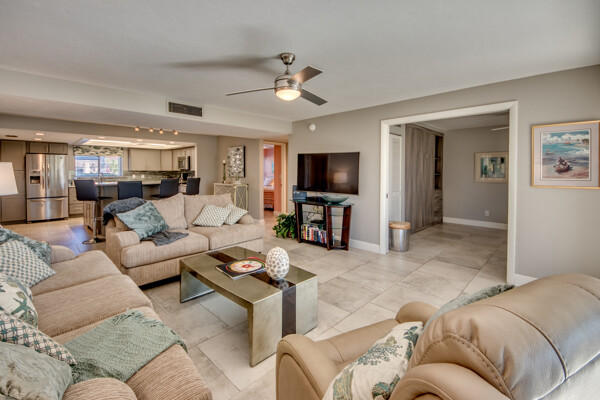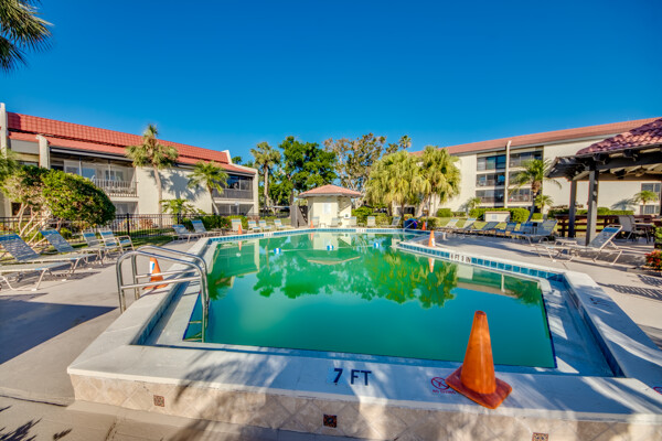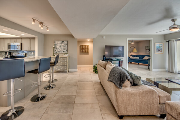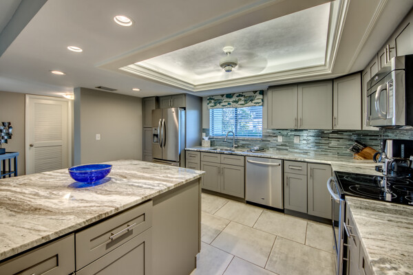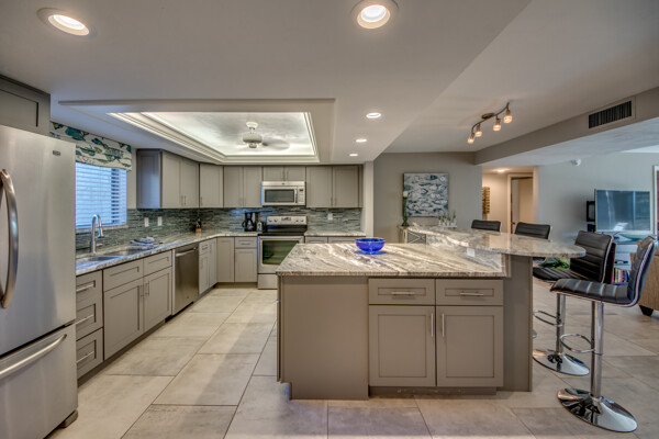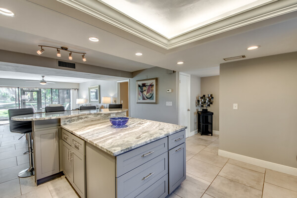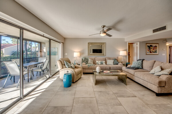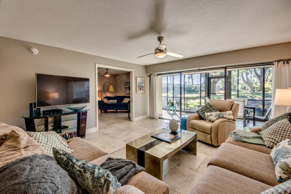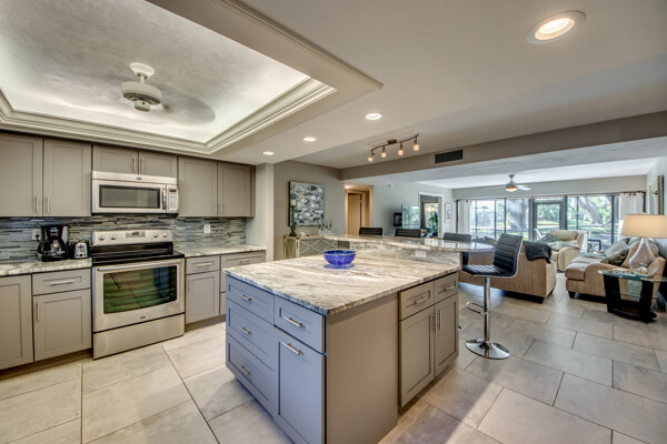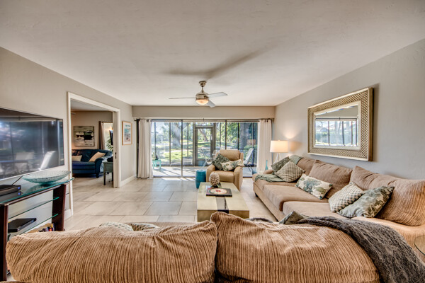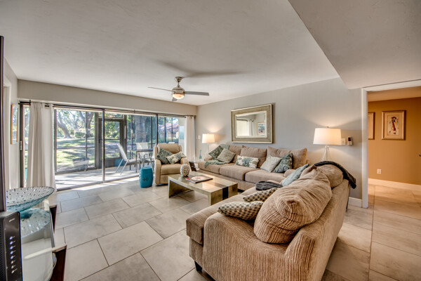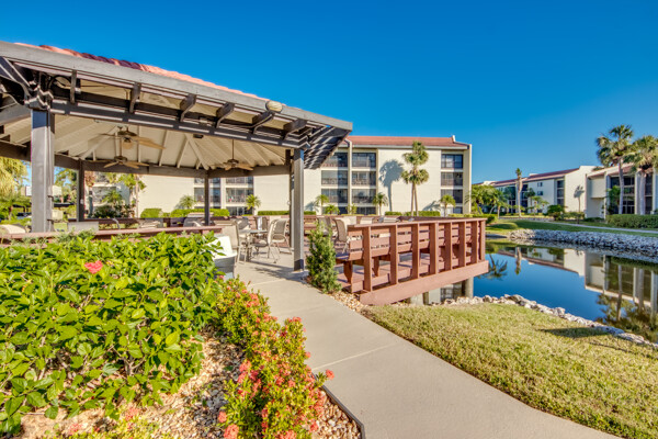 If you are looking for an active community, search no more as you will find it here at the Landings Yacht, Golf & Tennis Club with world-class amenities. Situated on 250 acres of riverfront splendor, the Landings boasts an 18-hole golf course, 13 lighted Tennis courts, Pickleball, Bocce, Olympic-sized pool, 18 stocked lakes to fish, a private harbor & marina, and special events & social groups galore. .. ALL are included in your HOA. When it's time to retreat, you'll experience the peace & tranquility of this lovely 1st Floor, THREE bedroom condo, nestled among mature shade trees & walking paths of the Windjammer Village. Remodeled with 24’ porcelain tile throughout, custom cabinetry, stunning granite countertops & huge island this split plan offers flex spaces with a modern-style Murphy in the 3rd bedroom and screened lanai with plexiglass sliders allowing additional under-air living all year round. Windjammer Village has its own gazebo & pool, is a pet-friendly association, and allows monthly rentals. A Million$ Lifestyle at a fraction of the price. So whether you are looking for your Florida Homestead, a second vaca getaway, or investing in a slice of paradise…You just found it!