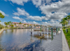 Newer Condo with deeded boat slip and lift on 200' wide canal. Sailboat Access and quick boat ride and no bridges to river. Single car garage with opener and elevator to your second floor oasis with lanai overlooking pool, canal and boat dock with remote control. Large open floor plan with large lanai. Wet bar in living area and third bedroom has private balcony. Great condition and floor plan. Highly sought after floor plan in great location just off Del Prado. Tenant in property till October 1st. Attention boaters! This is a must see.