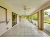 Large Three Bedroom Two Bath Home Located in the highly coveted Gold Coast Estates NOW available. Spacious Living Room Dining Area adjacent to Kitchen and Master. The Master host it's own Ensuite with Walk In Closet, Double Vanity Sinks and Private Water Room (Tub/Shower & Commode). Kitchen has Granite Counter Tops and Stainless Appliances with Pass Thru Window at Sink to Lanai. Enjoy our breezy days under the Covered and Screened Front Porch and Back Lanai Area, both under Truss. Access to Lanai for Sliders at Master, Living Room Dining Area & Family Room as well as the Guest Bath. Lovely deep yard with plenty of room for a Pool.