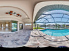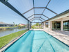 Spectacular new construction home just waiting for the first owner. This new home is located in one of the most desired areas of Cape Coral. Close to shopping and dining at the "Shops at Surfside". Home boasts 4 bedrooms or 3 bedrooms and a den (den has a closet). Walk up the paver stone driveway on to the covered entry. Upon entering, your eye falls to the open sliders to the sparkling pool and intersecting canal. What a view! A large Lanai and concrete dock are perfect for entertaining. The spacious floor plan supplies all the room you need but keeps that warm, comfortable home feeling. A beautiful Granite countered kitchen is a chefs dream. Pictures are a similar home. New pics next week. Basically same home.